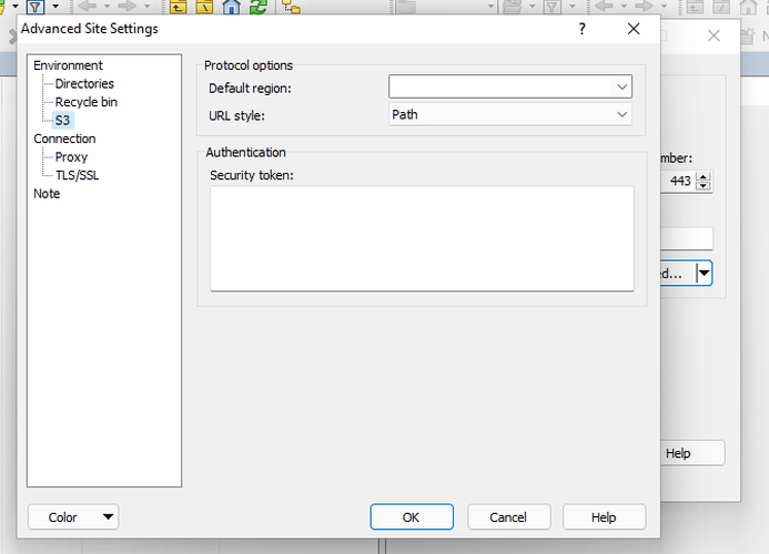 - Dans option avancé (In advanced options) , select Environment > S3, et changer "le style d'url" (URL Style), sélectionner chemin (Path) à la place de hôte virtuel (virtual-host).